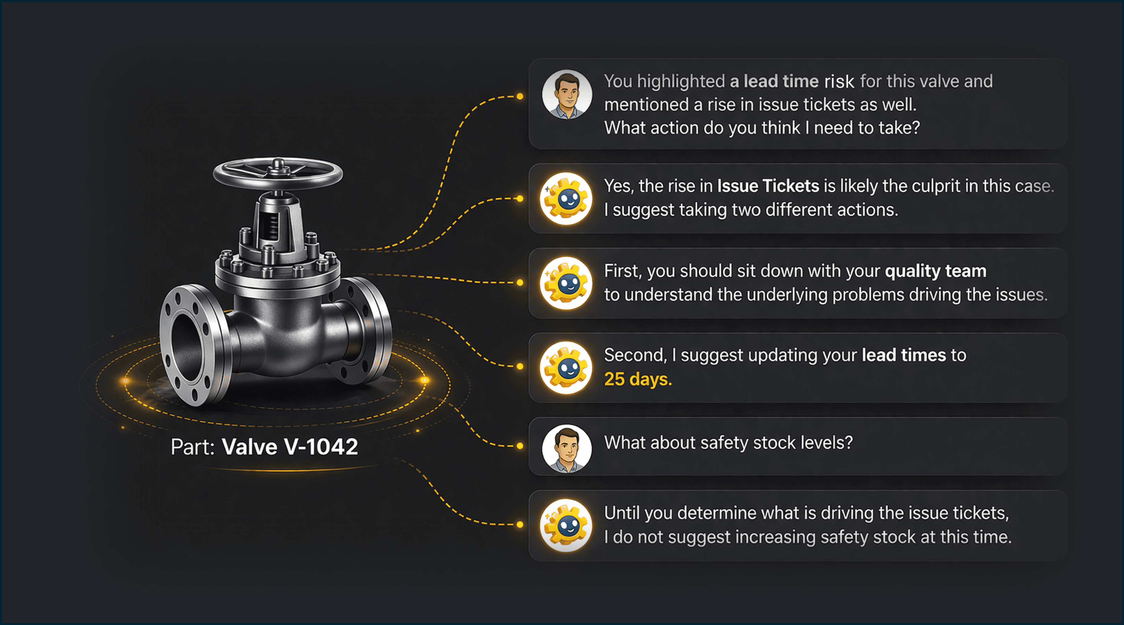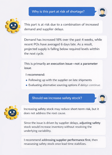 Unlike generic AI tools, the Advisor is tailored to your specific operation. It uses your data, but also learns from your company goals, strategies and policies.