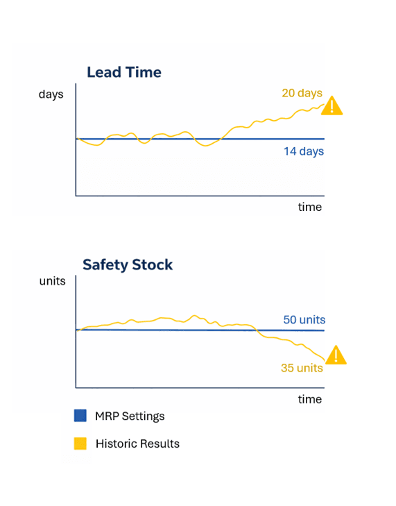 The MRP Refinery continuously analyzes planning performance across your MRP system and identifies when planning parameters are no longer aligned with your goals and operational reality.